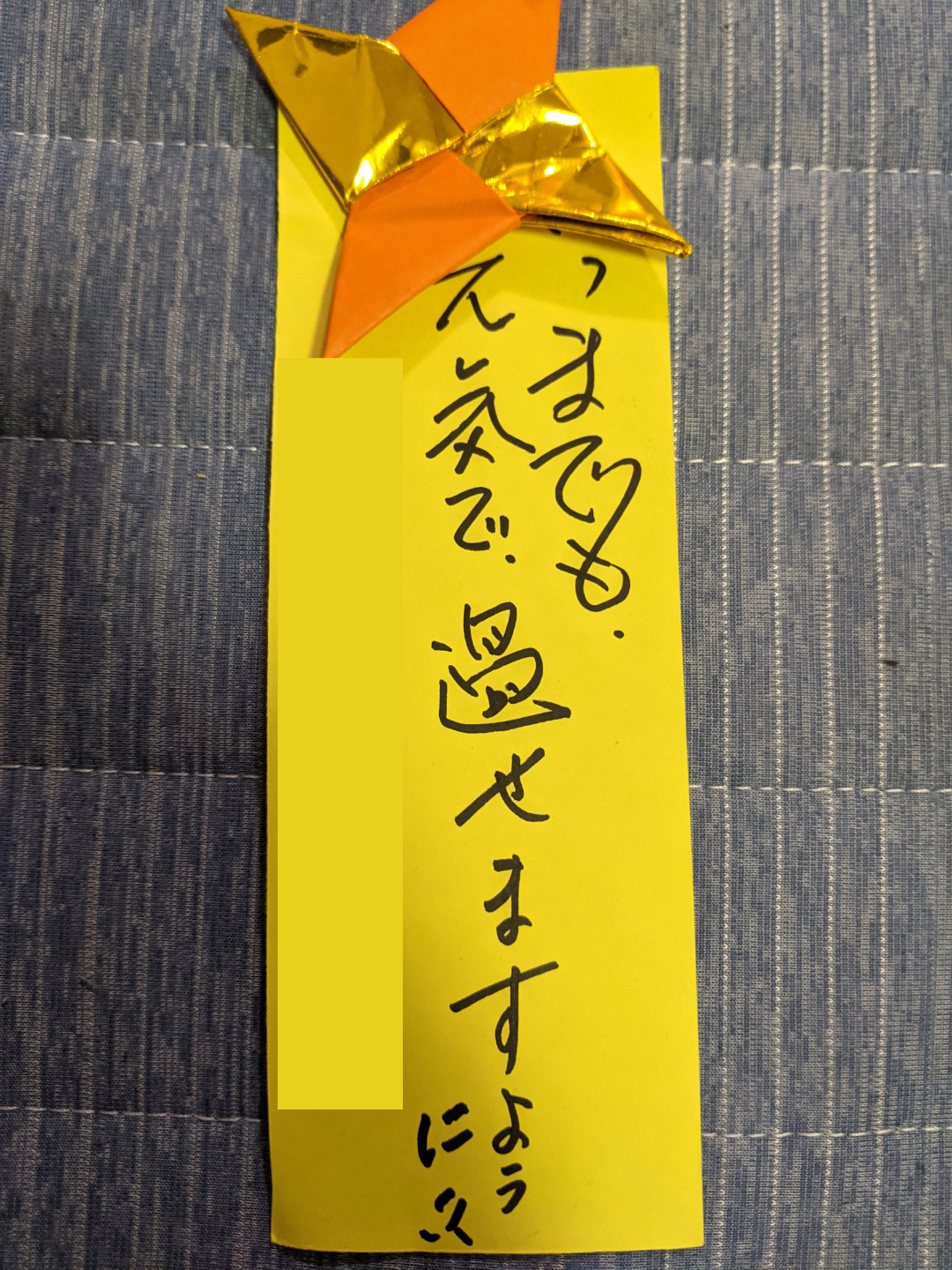 介護 認知症 認知症 認知症の母が、短冊に込めた願いは 2021-07-22 2026-01-17 Facebook Twitter スポンサーリンク 独身の私にとって、イベントや行事は、新入社員が入ったときと退職する人がいるときぐらいです。小さい子供がいれば、節分、端午の節句。学校行事の入学式、運動会、卒業式など、1年中、何かしらのイベントがあるのではないでしょうか。 母がデイサービスや小規模多機能に通うようになり、施設でも、色々と催し物を考えてくれていて、七夕には、短冊に願いを書いたようです。 「いつまでも、元気で過ごせますように」 去年の願い事は、こちら ボケてはいますが、ココ!という根本は、変わらないようです。 スポンサーリンク Facebook Twitter